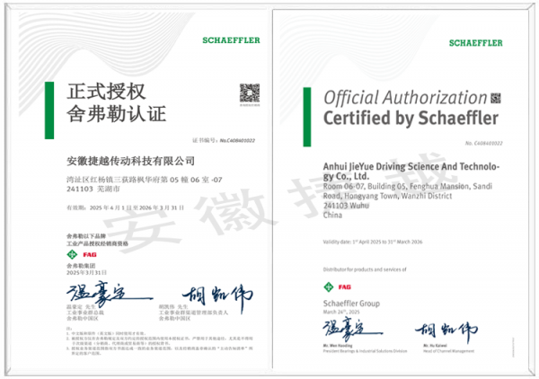 安徽捷越传动科技有限公司作为一级授权经销商,多年来一直专注FAG/INA轴承的销售与服务,主营立磨轴承、减速机轴承、辊压机轴承、回转窑轴承、破碎机轴承等FAG/INA轴承。我们的宗旨是为员工和客户提供超预期的满意和服务,在长期跟随企业快速发展时,不仅收获财富与成长,也收获温馨和快乐。